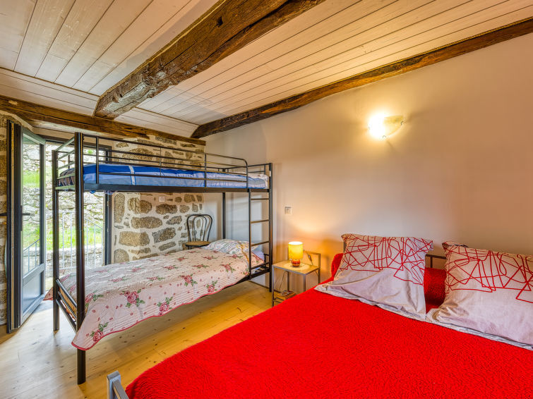 "Le Trépadou", maison 2 pièces 50 m2 sur 2 niveaux. Complètement en 2022, aménagement confortable: séjour/salle à manger avec 1 divan-lit (140 cm, longueur 190 cm), TV (satellite) (écran plat), ventilateur. Sortie sur la terrasse. Cuisine ouverte (1 plaque de cuisson, four, lave-vaisselle, 3 feux, grille-pain, bouilloire électrique, micro-ondes, cafetière électrique). À l'étage supérieur: (escalier en colimaçon) 1 chambre avec 1 x 2 lits superposés (90 cm, longueur 190 cm), 1 grand-lit (1 x 140 cm, longueur 190 cm). Sortie sur la terrasse. Douche/WC. Chauffage électrique. Grande terrasse 30 m2. Meubles de terrasse, barbecue, chaises longues. Très belle vue sur les montagnes, les alentours et la forêt. A disposition: lave-linge. Veuillez noter: maison non-fumeur. Entrée privée, détecteur de fumée. Annonce d'un particulier (art 155, IV du CGI).