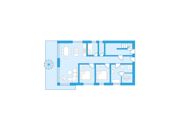 Huis 8-kamers 192 m2 op 2 verdiepingen. Ruim en licht, comfortabel en modern ingericht: groot woon-/eetkamer met Sat-TV (Flatscreen TV). Uitgang naar de tuin. 2 kamers, elke kamer heeft 1 2-pers bed (180 cm, lengte 200 cm), Sat-TV (Flatscreen TV). 1 kamer met 1 x 2 stapelbedden (90 cm, lengte 200 cm). Open keuken (oven, afwasmachine, 4 keramische glas kookplaten, broodrooster, waterkoker, magnetron, elektrische koffiemachine, kookeiland). Aparte WC, bad/douche/WC, dubbele wastafels, Sauna. Gas-verwarming. Bovenverdieping: groot woon-/eetkamer met Sat-TV (Flatscreen TV). Uitgang naar het balkon. 2 kamers, elke kamer heeft 1 2-pers bed (180 cm, lengte 200 cm), Sat-TV (Flatscreen TV). 1 kamer met 1 bed (90 cm, lengte 200 cm). Open keuken (oven, afwasmachine, 4 keramische glas kookplaten, broodrooster, waterkoker, magnetron, elektrische koffiemachine, kookeiland). Aparte WC, bad/douche/WC, dubbele wastafels, Sauna. Groot balkon 30 m2, groot terras 30 m2. Terrasmeubelen, balkonmeubilair. Ter beschikking: wasmachine, kinderstoel, kinderbed. Internet (Internet (WiFi), gratis). Niet rokers woning. Boekingen zijn alleen voor vakantiedoeleinden toegestaan.