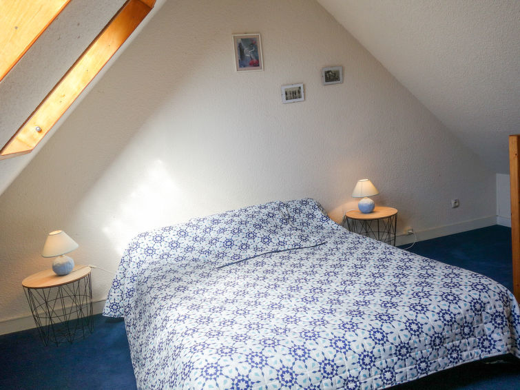 Studio 1-kamer 36 m2 op 2 verdiepingen op de 1e verdieping. Woon-/eetkamer met 1 divanbed en TV (Flatscreen TV). Uitgang naar het balkon. Kookhoek (4-pits kookplaat, oven, magnetron). Bad/WC. Bovenverdieping: (steile trap) galerij met afgeschuinde daken met 1 2-pers bed. Elektrische verwarming. Klein balkon, op het zuiden gelegen. Balkonmeubilair. Ter beschikking: wasmachine. Internet (WiFi, extra). Rookmelders. In plaats van een afgesloten slaapkamer bevinden sommige slaapgedeeltes zich in een open ruimte (galerij, nis, etc.). 56233000137VE