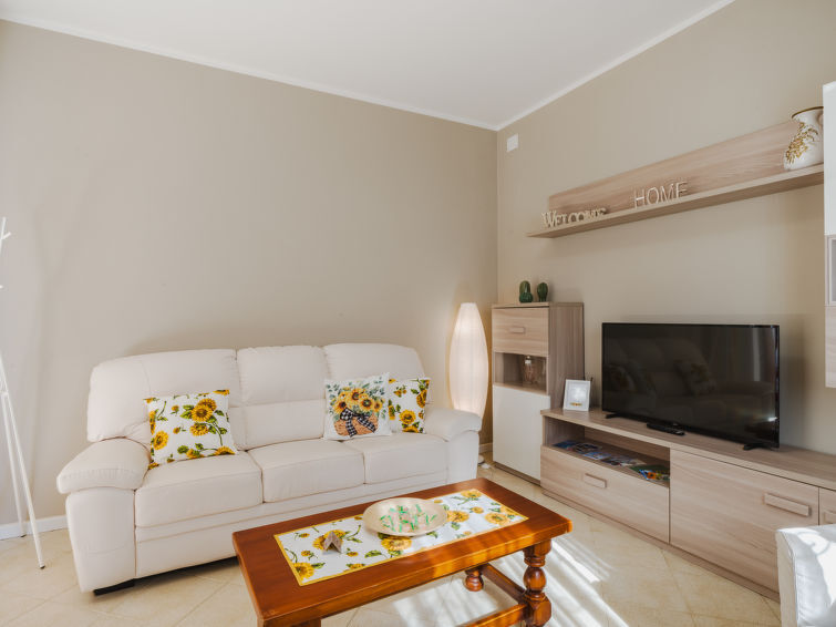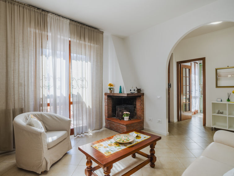 "Sunflower piano terra", appartement 4-kamers 95 m2, op de begane grond. Ruim en licht, volledig gerenoveerd, mooi en gezellig ingericht: woon-/eetkamer met open haard (alleen decoratie), TV (Flatscreen TV). Uitgang naar de zitplaats in de tuin. 2 2-pers. kamers. 1 kamer met 1 bed. Woonkeuken (oven, Gasfornuis, 4 kookpitten (vlammen), broodrooster, waterkoker, magnetron, diepvriezer, elektrische koffiemachine) met eettafel. Uitgang naar de zitplaats in de tuin. Douche/bidet/WC. Gas-verwarming, air-conditioning. Verwarming alleen beschikbaar van 01.11. tot 07.04. Ruime zithoek in de tuin gedeeltelijk overdekt. Terrasmeubelen, barbecue (verrijdbaar), zitgelegenheid. Ter beschikking: wasmachine, droger, strijkijzer, klamboe, haardroger. Internet (WiFi, gratis). Parkeerplaats (omheind, 1 Auto) bij het huis. Geschikt voor families. Niet rokers woning. Maximaal 1 huisdier/hond toegestaan. TV alleen IT. Rookmelders, brandblusser, geen lift. IT046033C23SN5M2LS