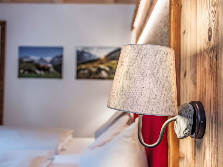 Chalet 4-kamers 110 m2 op 2 verdiepingen. Romantisch en met veel hout ingericht: hal. Open woonkamer met Sat-TV (Flatscreen TV), houtkachel. Open keuken (afwasmachine, 4 keramische glas kookplaten, broodrooster, magnetron, diepvriezer) met eethoek. 2 douche/WC's, dubbele wastafels. Vloerverwarming. Zolderverdieping: 1 kamer met 2 bedden (90 cm, lengte 180 cm). 2 2-pers. kamers. Uitgang naar het balkon. Balkon 7 m2, op het zuiden gelegen, groot terras 20 m2. Terrasmeubelen, ligstoelen (4). Zeer mooi panoramazicht. Ter beschikking: wasmachine, kinderstoel, kinderbed, haardroger. Internet (WiFi, gratis). Niet rokers woning. Maximaal 1 huisdier/hond toegestaan. Rookmelders.
