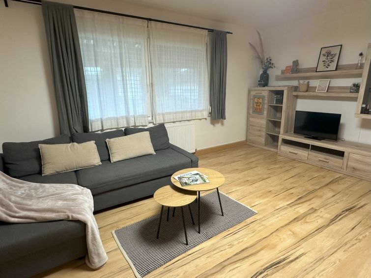 Huis 3-kamers 100 m2. Ruim en licht, volledig gerenoveerd in 2017, modern en gezellig ingericht: groot hal. Uitgang naar de tuin, naar het terras, naar de loggia. Groot, open woon-/eetkamer met 1 divanbed en 1 2-pers divanbed (140 cm, lengte 190 cm), Sat-TV en Flatscreen TV. 1 kleine 2-pers. kamer. Groot, open keuken (oven, afwasmachine, 4 keramische glas kookplaten, diepvriezer, elektrische koffiemachine) met eethoek. Bad/WC. Houten vloeren. Terras overdekt, op het zuiden gelegen, groot tuin. Terrasmeubelen. Uitzicht op het landschap. Ter beschikking: Internet (WiFi, gratis). Geschikt voor families. Rookvrij huis. 1 huisdier/hond toegestaan. Rookmelders.