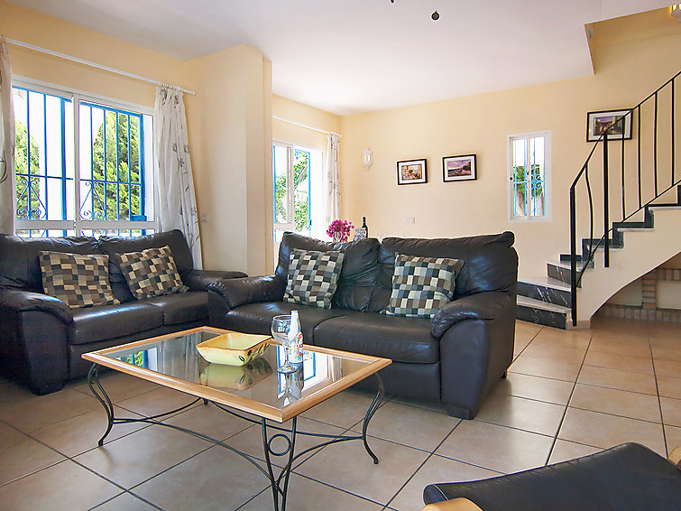 Burriana 1 km van Nerja: Groot, gezellige villa "Villa Pueblo Jara". In de plaats, 1.9 km van het centrum van Nerja, rustige ligging villa wijk, 600 m van zee, van het strand, op het zuiden. Voor alleengebruik: kleine, mooie tuin op verschillende niveaus, openluchtzwembad niervormig (4 x 8 m, 100 - 200 cm diepte, seizoensgebonden beschikbaarheid: 01.Jan. - 31.Dec.). Patio (150 m2), barbecue. Winkel, levensmiddelenwinkel, supermarkt, winkelcentrum 20 km, restaurant, bar 400 m, bakkerij, café, internet cafe, voetgangersgebied 700 m, fietsverhuur 400 m, biertuin 400 m, bushalte "Bus local" 20 m, treinstation "Málaga" 20 km, veerboot "Málaga" 20 km, zandstrand "Burriana" 600 m, duikschool 300 m, thermaalbad 500 m. Jachthaven 20 km, jachthaven 20 km, golfterrein (18 holes) 20 km, surfschool 20 km, zeilschool 20 km, tennis 500 m, manege 1 km, wandelroutes 1 km vanaf het huis, fietspad 300 m, skipisten 70 km, skischool 70 km. Attracties in de buurt: Museo de Nerja. 600 m, Centro Cultural variedad de conciertos. 2 km, Cuevas de Nerja. 3 km, Pueblo de Frigiliana. 4 km, Deportes acuaticos en la playa. 600 m, Parques infantiles en la playa. Bekende skigebieden kunnen gemakkelijk worden bereikt: Sierra Nevada en Granada 70 km. Bekende meren kunnen gemakkelijk worden bereikt: La Viñuela (pantano) en Velez-Málaga 20 km. Wandelgebied Montañas de Almijara 1 km. Geen lift. Geschikt voor families. De eigenaar accepteert geen jeugdgroepen. Laden en lossen van de baggage is mogelijk bij het huis.