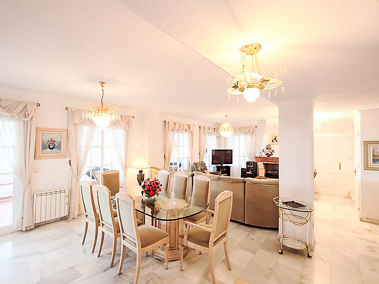 Huis 7-kamers 300 m2 op 2 verdiepingen. Comfortabel en mooi ingericht: woon-/eetkamer met open haard, Sat-TV, video, stereo-installatie, DVD, elektrische verwarming en air-conditioning. Uitgang naar het terras. 1 kamer met 1 2-pers bed en Sat-TV. Uitgang naar het terras. Keuken (4-pits kookplaat, oven, afwasmachine, magnetron, diepvriezer, grill). Douche/WC. Elektrische verwarming, air-conditioning. Bovenverdieping: 1 kamer met 1 2-pers bed, bad/bidet/WC en Sat-TV. Uitgang naar het terras. 1 kamer met 2 bedden (90 cm), bad/bidet/WC en Sat-TV. Uitgang naar het terras. 1 kamer met 2 bedden (90 cm), Sat-TV. Uitgang naar het terras. 1 kamer met 2 bedden (90 cm), bad/bidet/WC en Sat-TV. Uitgang naar het terras. 1 kamer met 1 2-pers bed en Sat-TV. Bad/bidet/WC. Elektrische verwarming, air-conditioning. 2 balkons 26 m2, terras 100 m2. Terrasmeubelen, barbecue, ligstoelen (6). Mooi panoramazicht op zee. Ter beschikking: wasmachine, kinderstoel, kinderbed. Internet (WiFi, gratis). Alle slaapkamers hebben uitzicht op zee. VFT/GR/01459