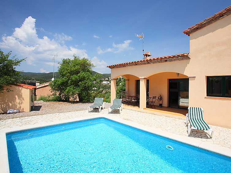 Huis 4-kamers 90 m2. Doelmatig ingericht: woon-/eetkamer met open haard en Digitale TV. Uitgang naar het terras, naar het zwembad. 1 kamer met 1 2-pers bed (150 cm, lengte 190 cm), bad/bidet/WC. 1 kamer met 1 2-pers bed (150 cm, lengte 190 cm). 1 kamer met 2 bedden (90 cm, lengte 190 cm). Open keuken (oven, afwasmachine, broodrooster, waterkoker). Douche/bidet/WC. Balkon. Terrasmeubelen, barbecue, ligstoelen (6). Uitzicht op de bergen. Ter beschikking: wasmachine, kinderstoel, kinderbed tot 2 jaar. Internet (WiFi, gratis). Rookvrij huis. TV alleen ES. HUTG-000927 // Reg. Nr.: ESFCTU00001701500001867200000000000000000HUTG-0009275