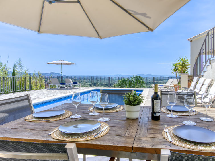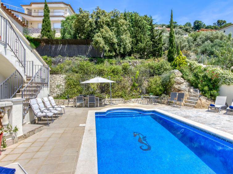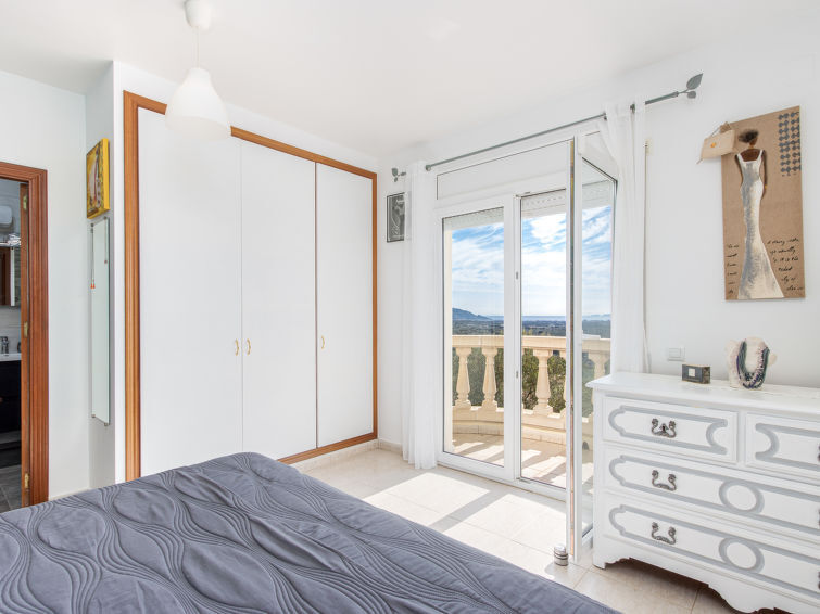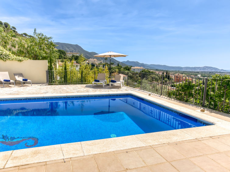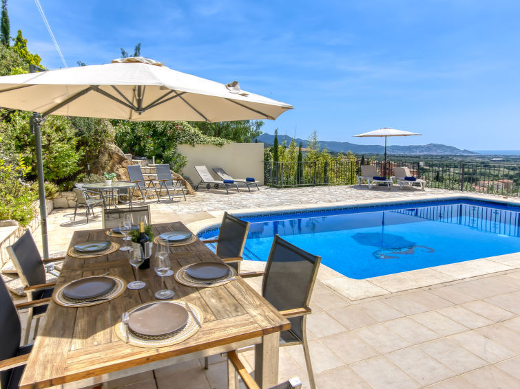 Villa 5-kamers 224 m2 op 2 verdiepingen. Ruim en licht, comfortabel en stijlvol ingericht: woon-/eetkamer 39 m2 met Sat-TV. Uitgang naar het terras, naar het zwembad. 1 kamer 15 m2 met 1 2-pers bed (160 cm, lengte 190 cm), douche/WC, air-conditioning en heteluchtverwarming. Uitgang naar het terras. 1 kamer 11 m2 met 1 2-pers bed (150 cm, lengte 190 cm), air-conditioning en heteluchtverwarming. 1 kamer met 2 bedden (90 cm, lengte 190 cm), air-conditioning en heteluchtverwarming. Open keuken (oven, afwasmachine, 3 inductiekookplaten, broodrooster, waterkoker, magnetron, diepvriezer, elektrische koffiemachine) met eettafel. Bad/WC. Bovenverdieping: (buitentrap), 1 kamer met 1 2-pers bed (150 cm, lengte 190 cm), douche/WC, air-conditioning en heteluchtverwarming. Uitgang naar het terras. Groot terras. Terrasmeubelen, barbecue, ligstoelen. Mooi panoramazicht op zee en de bergen. Ter beschikking: wasmachine, strijkijzer, haardroger. Internet (WiFi, gratis). Parkeerplaats (3 Auto's) bij het huis. Eén tweepersoonskamer is buiten het appartement. Rookvrij huis. TV alleen DE, FR, ES. Geen lift. HUTG-064538 // Reg. Nr.: ESFCTU00001700800097820600000000000000000HUTG-0726257