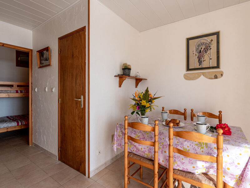 Huis in een rij 2-kamers 30 m2. Woon-/eetkamer met 1 2-pers divanbed (140 cm, lengte 190 cm), TV en air-conditioning. 1 kleine kamer 4 m2 met 1 x 2 stapelbedden (90 cm, lengte 190 cm). Kookhoek (2-pits kookplaat, mini-oven, magnetron). Douche/WC. Elektrische verwarming. Terras 50 m2. Terrasmeubelen, barbecue. Beperkt uitzicht op zee en de bergen. Dubbele beglazing. Aanbod door een particulier volgens art. 155, IV van CGI.