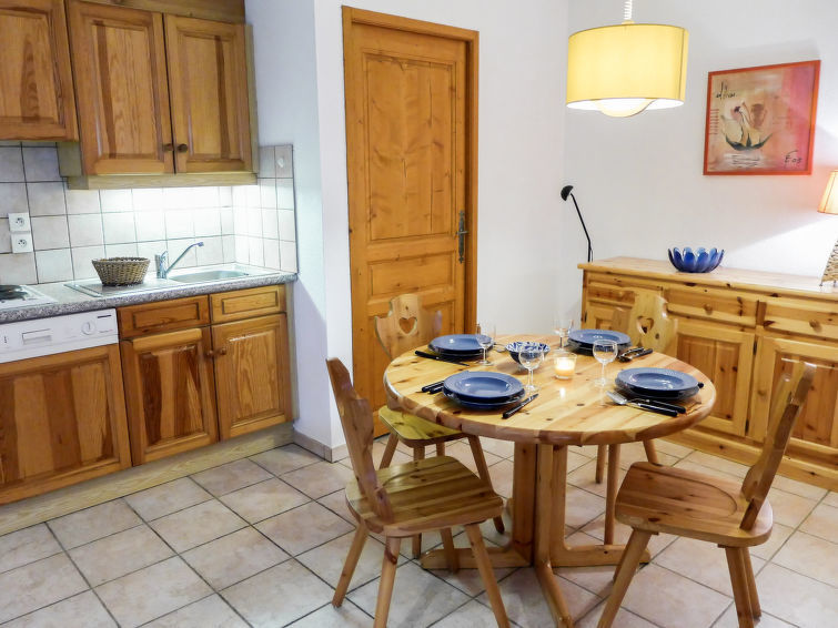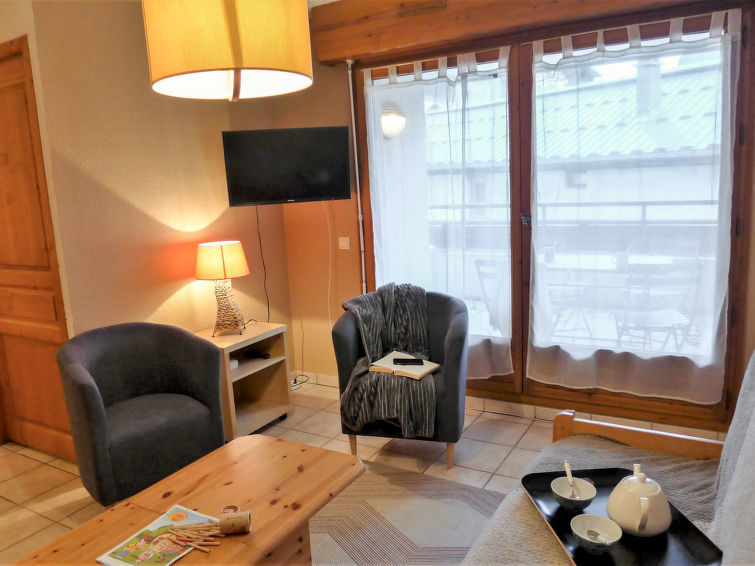 Appartement 2-kamers 40 m2 op de 1e verdieping. Woon-/eetkamer met 1 uitschuifbaar bed (2 pers. 2 x 80 cm, lengte 190 cm), TV. Uitgang naar het terras. 1 kamer met 2 bedden (80 cm, lengte 190 cm). Kookhoek (oven, afwasmachine, 2 keramische glas kookplaten, waterkoker, magnetron, elektrische koffiemachine). Badkamer, aparte WC. Elektrische verwarming, boiler. Terras, op het zuidwesten gelegen. Uitzicht op de bergen. Ter beschikking: Internet (WiFi, extra). Garage nr. 61 au sous sol, hoogte 190 cm. TV alleen FR. Rookmelders. 74056001675WO