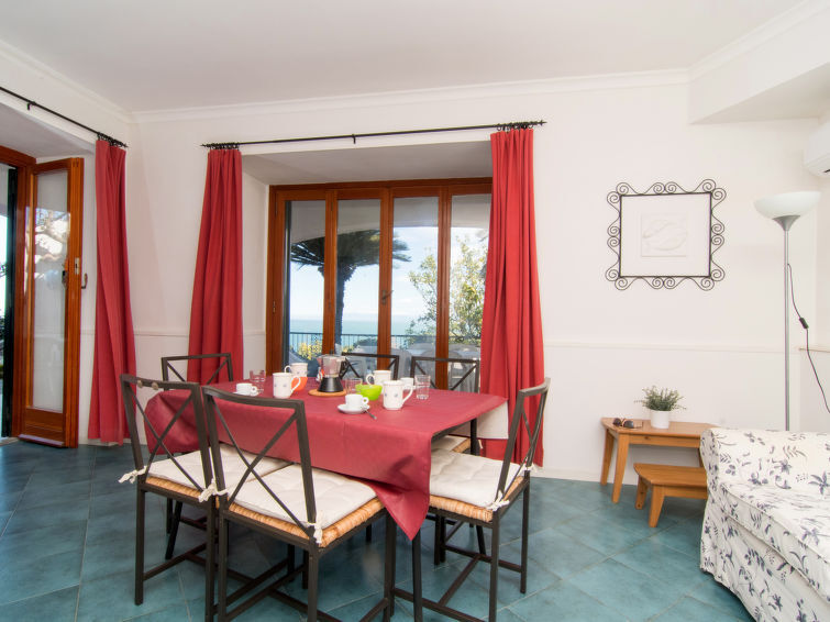 Appartement 6-kamers 150 m2, op de begane grond. Gedeeltelijk gerenoveerd in 2019, eenvoudig en comfortabel ingericht: woon-/eetkamer met 1 2-pers divanbed, eettafel, kookhoek, TV en Flatscreen TV. Uitgang naar de tuin, naar het terras. Woon-/eetkamer met 1 2-pers divanbed, eettafel, kookhoek en TV (Flatscreen TV). Uitgang naar de tuin, naar het balkon. 2 2-pers. kamers. 2 2-pers. kamers, elke kamer heeft eettafel en kookhoek. Uitgang naar de tuin, naar het balkon. Kookhoek (2-pits kookplaat, broodrooster, waterkoker, magnetron). 4 douche/bidet/WC's. Geen verwarmingsmogelijkheid. Groot terras 200 m2. Terrasmeubelen, ligstoelen (8). Zeer mooi uitzicht op zee. Ter beschikking: haardroger. Internet (Internet (WiFi), gratis). Parkeerplaats nr. 1. Geschikt voor families. Koelkast zonder vriesvak, niet rokers woning. Brandblusser.