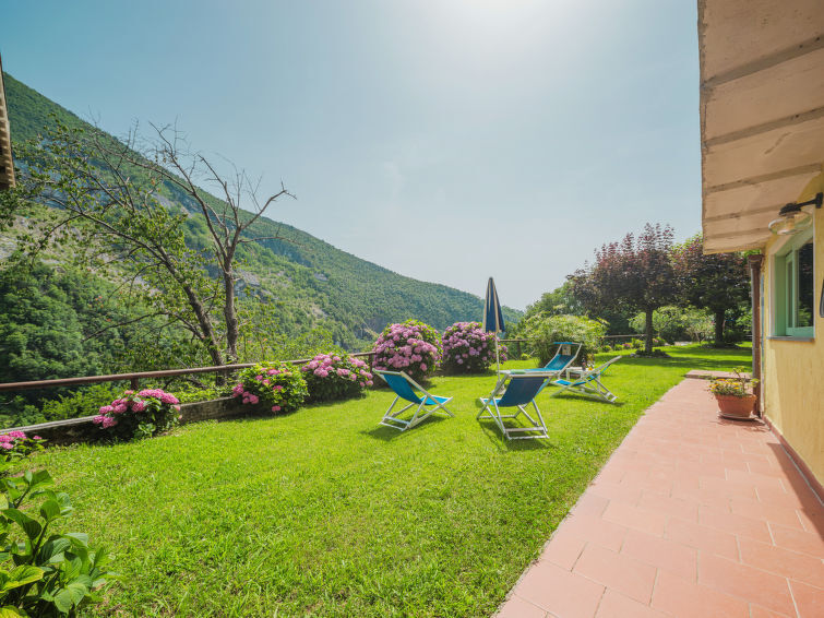 Seravezza: Gezellig, rustieke landhuis "La Grande Aia", van 2 verdiepingen. 2 huizen in de woning. 1 km van het centrum van Seravezza, rustige, zonnige ligging tegen een helling, in een woonwijk, 20 m van de bosrand, 9 km van zee, aan een doodlopende weg, te midden van groen. Voor medegebruik: groot, verzorgde tuin op verschillende niveaus (omheind) met gazon. Voor alleengebruik: tuin 50 m2, openluchtzwembad (verhoogd) omheind (3 x 5 m, 140 cm diepte, seizoensgebonden beschikbaarheid: 28.Mei. - 24.Sep.). Terras, tuinmeubelen, barbecue. In het complex: sauna (extra). Hot tub, wasmachine (voor medegebruik). Wissel van linnengoed (extra wissel te betalen). Wissel van handdoeken (extra wissel te betalen). Steile, smalle toegangsweg tot aan het huis. Parkeerplaats bij het huis op het terrein. Levensmiddelenwinkel 1 km, supermarkt 1 km, restaurant 1 km, bushalte 800 m, zandstrand "Forte dei Marmi" 11 km. Golfterrein (18 holes) 12 km, wandelroutes 30 m vanaf het huis. Attracties in de buurt: Pietrasanta 5 km, Forte dei Marmi 10 km, Lucca 34 km, Pisa 40 km, Viareggio 19 km, Portovenere 68 km. Bekende meren kunnen gemakkelijk worden bereikt: Lago di Massaciuccoli 32 km, Torre del Lago 25 km. Wandelgebied Antro del Corchia Levigliani 15 km, Monte Forato 11 km. Auto noodzakelijk. Object referentie: IT5167.150.1 is gelegen op hetzelfde terrein.